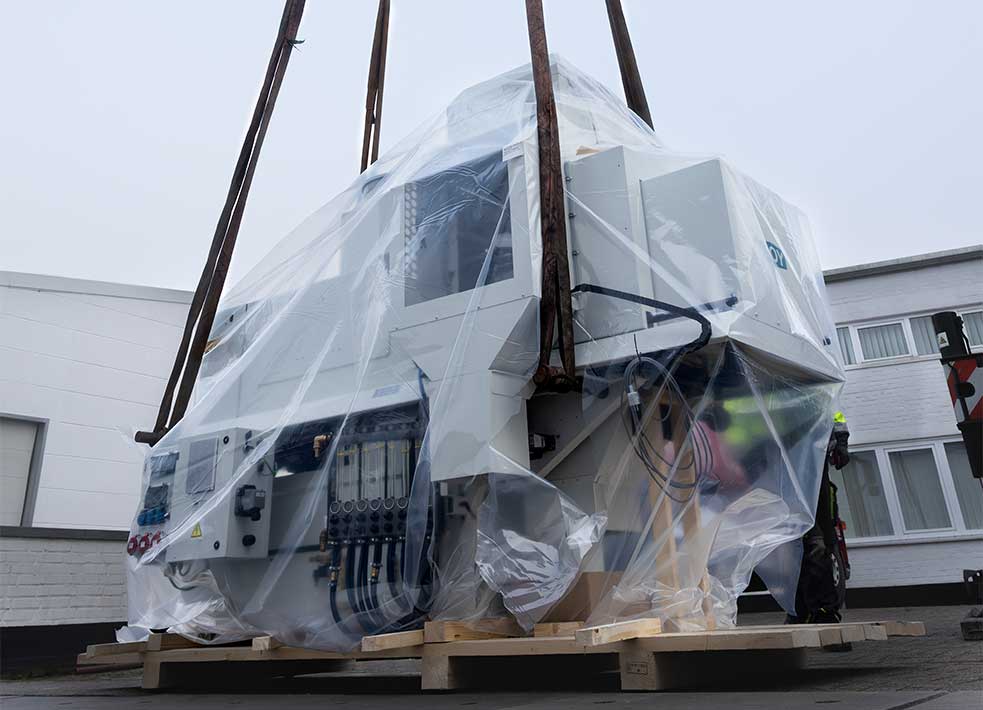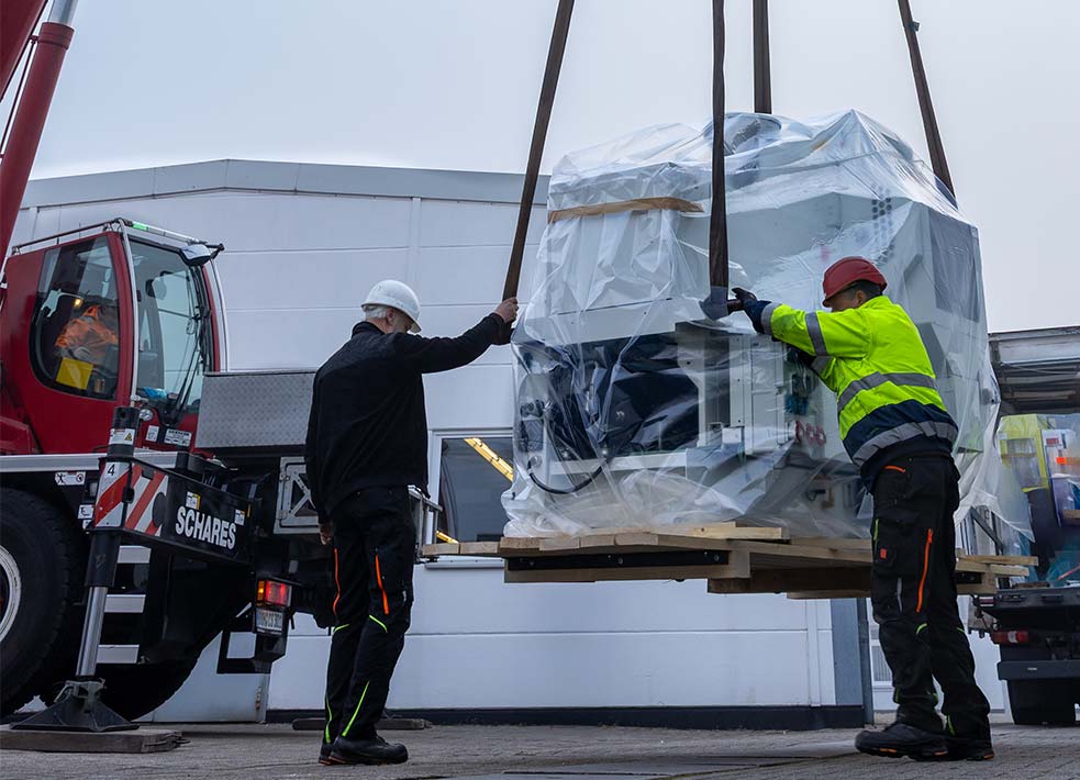 The injection moulding machine, wich weighs several tons, was again delivered by crane and allows the precise production of innovative medical