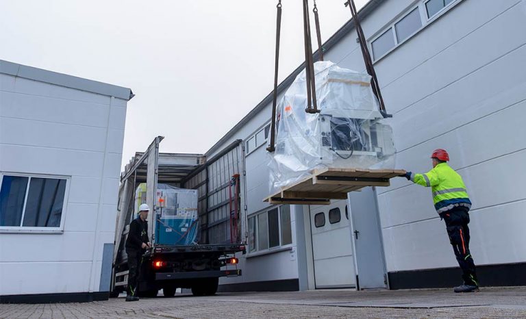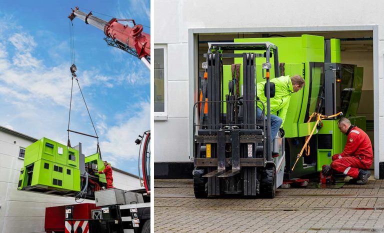Mit einem Gewicht von knapp 7 Tonnen bringt die Keramikspritzgießmaschine fast so viel auf die Waage wie ...